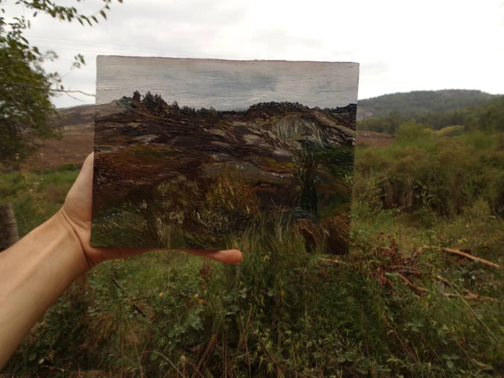 Mi búsqueda estética es influenciada en primera instancia por la fuerza de la naturaleza, luego por la expresión corporal y por el teatro; esas corporeidades, personajes y figuras que he encarnado y que he presenciado en tantos ensayos y entrenamientos ahora le dan cuerpo a mis obras. Pero también mi obra se inspira en la literatura; por esto es que fluctúa hacia climas de ensueño donde el símbolo y la poesía se hacen materia sobre el lienzo.
